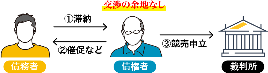 住宅ローン滞納が3ヶ月~6ケ月続くと、債権者は抵当権の実行といって物件を差押え、競売手続きに入ります。